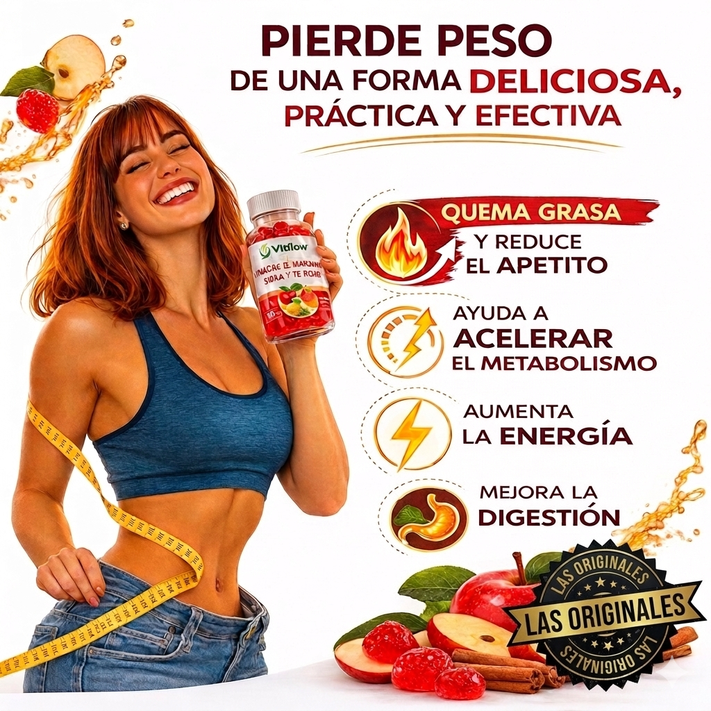 Transforma tu bienestar desde adentro con las gomitas de vinagre de manzana, ayudando a controlar el apetito y evitando antojos innecesarios .